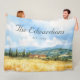 Denna eleganta vattenfärg gårdshus Tuscan landsbygdsscen familjenamn personlig fleecefilt är den perfekta heminredningen. Designad av Thisisnotme©