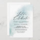 Den här vattenfärgen tvättar blått låt oss firande inbjudan är perfekt för en modern förlovningsfest, bröllop efter party, pension, studenten eller något lycklig evenemang. Den enkla och klassiska utformningen har en stänk av pastellljusblå vatten färg med minimalistisk elegant stil.