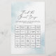 Den här vattenfärgen tvättar blå... -...att gästbingo-spelet är perfekt för en modern babydusch. Den enkla och klassiska utformningen har en stänk av pastellljusblå vatten färg med minimalistisk elegant stil. Anpassa varje ruta med fakta om dina gäster.