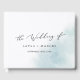 Denna vattenfärg tvättar blå monogram tillbaka bröllop gäst bok är perfekt för ett modernt bröllop. Den enkla och klassiska utformningen har en stänk av pastellljusblå vatten färg med minimalistisk elegant stil. Anpassa ytterhöljet med namn på bruden och brudgummen och bröllop-datumet.