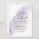 Den här vattenfärgen tvättar att lila låt oss inbjudan är perfekt för en modern förlovningsfest, bröllop efter party, pension, studenten eller alla lycklig. Den enkla och klassiska utformningen har en stänk av pastelllavendel lila vatten färg med minimalistisk elegant stil.