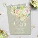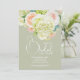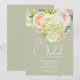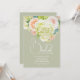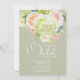 Brunch och bubbel bröllopsdusch inbjudningar visar dina detaljer i chic bokstavering på en salvia grön bakgrund (eller valfri färg) accentuerad med vackra vattenfärg blommor - vita och gröna hortensior, rosa och krämfärgade rosor, prästkragar, små stjälkar och blad. MATCHANDE artiklar i vår samling.