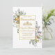Modern Elegant Vattenfärg Vildblomma Quinceanera-inbjudan inkluderar ömtåliga gula, rosa, lila, dammiga blå och vita vilda blommor, eukalyptusblad, salvia gröna blad och annan botanisk grönska på en guldram. Guld Tiara Krona.