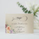 Detta svarsbrev är prytt med en vacker akvarell bukett och plats för parets initialer inom rullande avdelare på naturinspirerade färgade bakgrunder. Baksidan har detaljerna som mottagaren ska fylla i. Designad för att samordna med vår Springtime Wildflower Wedding Collection. För att ändra detaljer, klicka på "Personalisera". För att flytta texten eller ändra textstorlek, teckensnitt eller färg klickar du på "Klicka för att anpassa ytterligare".
