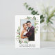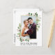 Elegant Vattenfärg Vinter Grönska Bröllops Foto Tack Kort inkluderar eucalyptusblad och röda järnekbär. Guld ram.