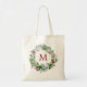 Tote-påse med vattenfärg vinter grönska krans med monogram.