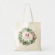 Tote-väska med vattenfärg vinter grönskande krans med monogram och efternamn.