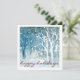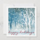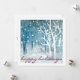 Rustik snöig vintersceneri målad i vattenfärg med en vacker röd icke-konfessionell God Jul hälsning i röd skrivstil.