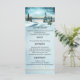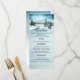 Julmenykort med en akvarell vinterlandskap scen med snötäckta tallar och stiliserade guldstjärnor. Även vacker för en vinterbröllop.