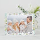 Modern Elegant Watercolor Blue and White Blommigt God jul Photo Helgdag Card omfattar botaniska grönska löv, blåbär, blåa blommor, bomull och röda bär.
