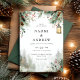 Denna inbjudan till vinterjulbröllop är ett romantiskt val för par att fira sin speciella dag under helgdagarna. Med snösnösnöslet gräs grenar, festlig grönsak, pinekoner och en glödande lanterna fångar det vackert magin i en skogarnas jultid. Elegantens vattenfärgsdesign skapar ett varmt och tidlöst utseende, perfekt för jul- eller vinterbröllop. Lätt att redigera och anpassa med dina detaljer - och om du vill ha lite hjälp med att anpassa så hjälper jag lycklig så att dina inbjudningar bara blir höger.