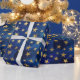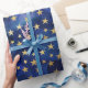 Vattenfärgad blå Mönster med Guld Stars Presentpapper