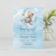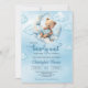 Vattenfärgad blå och brun nalle över måne inbjudningar