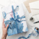 Vattenfärgad blå peony och sväljer Wrapping papper Presentpapper