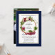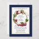 Modern Elegant Watercolor Grapes and Vines Wood WandeWedding Investigation omfattar burgundy ro, rosa ros, röd ros och botaniskt grönt. Blue Background och Guld Ram. Fotobakåt