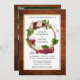 Modern Elegant Watercolor Grapes and Vines Wood WandeWedding Investigation omfattar burgundy ro, rosa ros, röd ros och botaniskt grönt. Rustic Land Wood Background och Guld Ram. Fotobakåt