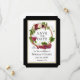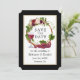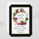 Modern Elegant Watercolor Grapes and Vines Wood Wand Wand Save Date Bröllop annoncement Card omfattar burgundy ro, rosa ros, röd ros och botaniskt grey. Svart bakgrund. Guld Ram.