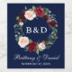 Vattenfärgen Burgundy Marsala och Blå Blommigt Bröllop Monogram Vin och mousserande vin-etiketter