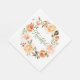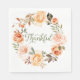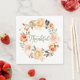 Denna Blommigt Napkin har en söt vattenfärgspersika och orange ro andedräkt. Färg som används omfattar oliv grönt, rost och orange. I mitten finns stiliserad text på oliv grönt som säger "Tack". Allt visas på en skarp vit bakgrund. Den här inbjudan koordinerar med Ge Blommigt Pumpkin-samlingen. Napkins säljs i satser om 50.