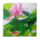 Modern blommigt, modern vattenfärgsgrafik från den ursprungliga målningen av konstnären Sacha Grossel. Denna vackra rosa som är vattentät bland mörk grönt och kalkgrönt löv visar en abstrakt som skildrar vattensklockans reflektion.
