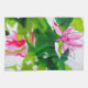 Modern blommigt, modern vattenfärgsgrafik från den ursprungliga målningen av konstnären Sacha Grossel. Denna vackra rosa som är vattentät bland mörk grönt och kalkgrönt löv visar en abstrakt som skildrar vattensklockans reflektion.