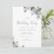 Elegant och Chic Vattenfärg Botaniskt Födelsedagsfest inbjudan. Snyggten födelsedagsfest inbjudan har en vacker grönt med vattenfärg boho-chic eucalyptus löv på framsidan och baksidan av inbjudan. Matchningsprodukterna finns i Eucalyptus-samlingen (Simple & Chic).