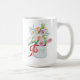 Vattenfärgad bukett av blommor i vas med revben kaffemugg