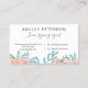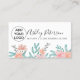 Ett modernt, snyggt notariellt affärskort med Blommigt vattenfärgsmonogram och namn och en modern typografi, med handmålad korallpersika rosor, pastellblommor och nyplanterade rosa med grönt och brun löv och grenar elegant i en botanisk arrangemangare. En elegant-skriptkalligrafi, lägg till social-media. Lägg till eller ta bort logotypen.