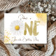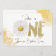 Cute water color minimalistic daisy födelsedagsinbjudan till Girl and boys första födelsedag. Enkel och söt. Editable namn, adress.