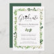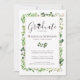 Vänner och familj i inbjudan som ska fira med graden med denna moderna inbjudan till studenten som innehåller vattenfärgen eukalyptus löv.