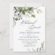 Vattenfärgad eukalyptus Greenery Rehearsal Middag Inbjudningar