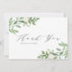 Skicka tack med det här giriga tacket. Den har vattenfärgade illustrationer av blad och vita blommor med grått-skript. Detta gröna tack är perfekt för vår bröllop, studenten, babyduschar, möhippor och så mycket mer.