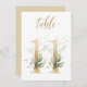 Vackert kort för bordsnummer med botaniskt motiv - en vattenfärgad illustration av grönt och guld löv. Bord 11. Kontrollera alla tillgängliga nummer