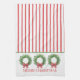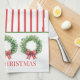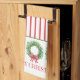 Den här personligen har helgdag i kökshanddukar i julen grönt vrak med röda gingham-knärör på en bakgrund av rött och vitt rand. Anpassa med speciell text.