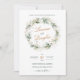 Inbjudan till Elegant bröllop med vackra botaniska krans med grönaktiga och gyllene löv i vattenfärgen stil.
