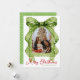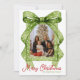 Vattenfärgad Grönt Polka Dot Bow Julfoto Julkort