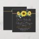 Vattenfärgad Gult Solblommor Svart Square Bröllop Inbjudningar