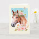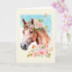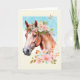 Vackra vattenfärgshälsningskort för häst och blommor. Ett underbart kort för att skicka ett speciellt meddelande till din familj eller vän eller någon som kärlek hästar.