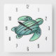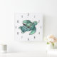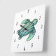 Vattenfärgad havssköldpadda tecknad blå grönt fyrkantig klocka