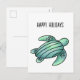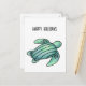 Vattenfärgad havssköldpadda tecknad blå grönt helg vykort