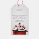 Moderna Juletiketter med vattenfärg, med ett rött mugg med hett choklad och alla beslag, och helt enkelt anpassade, modern text.