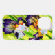 Fin originalmålning av färgstark lila gult och grönt iris-blomma. Blekande färg. av vattenfärgen bra.