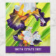 Fin originalmålning av färgstark lila gult och grönt iris-blomma. Blekande färg. av vattenfärgen bra.