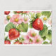 Vattenfärgad jordgubbar och Rosa Flowers Vykort