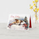 Vattenfärgen Julgran med en hund som sover på en kudde. Text kan ändras.