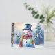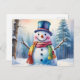 Vattenfärgad jul Snögubbe i Winter Forest Helg Vykort
