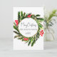 Vintergrön, röd bär, klassisk, elegant, modernt, rustiskt God jul-kort. Vattenfärgsutandning gräs träd, ett första traditionellt kort. Anpassa den med din information.