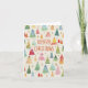 Ett festivt, icke-fotovikt kort med helgdag har ursprungliga vattenfärgbilder av färgstarkt Julgranar.