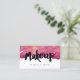 Det här unika affärskortet med rosa, svartvitt och vit makeup-artist har ord-handskriften "Makeup" med fet kalligrafi och en målad rosa vattenfärg struktur.