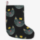Vattenfärgad katt ansikte, svart sömlös. liten julstrumpa